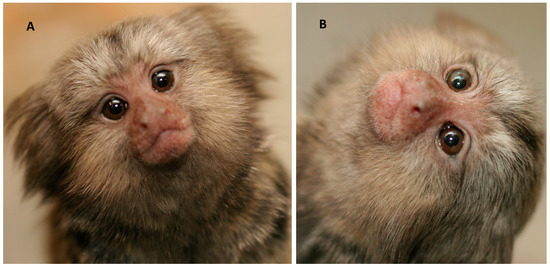 - Kaplan, G.; Rogers, L.J. Head-cocking as a form of exploration in the common marmoset and its development. Dev. Psychobiol. 2006, 48, 551–560. [Google Scholar] [CrossRef] [PubMed]