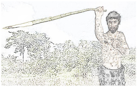 This explanation of the origins of handedness became known as the sword and shield hypothesis and has been dismissed on several occasions [125,126], primarily because human handedness developed long before the development of shields. However, the central idea of the theory, that right-handedness developed because it reduced fatal wounds when fighting with weapons, due to the position of the heart, does not depend on the presence or use of a shield. As described in detail by Larsson, when fighting with sharp weapons, the hand used to hold the weapon influences the area of the thorax that is most exposed to the opponent’s weapon [121]. A left-hand unilateral grip will rotate the left hemithorax towards an opponent. Conversely, a right-hand unilateral grip exposes the right hemithorax, and therefore the heart will be more protected compared to a left-hand grip. In addition, an unoccupied left arm, especially when bent, may be used as a natural shield for the more vulnerable left thorax (see Figure 2 and Figure 3). Consequently, right-handed early ancestors, with a preference for using the right forelimb in combat, may have reduced their risk of a mortal wound [121].