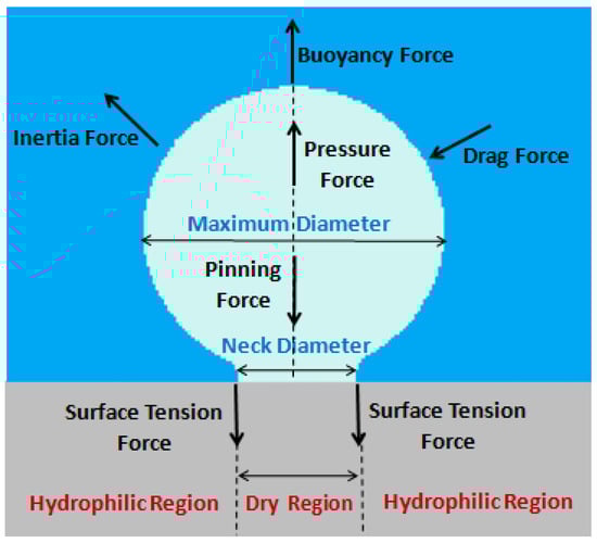 - Xia, Y.; Gao, X.; Li, R. Influence of Surface Wettability on Bubble Formation and Motion. Langmuir 2021, 37, 14483–14490. [Google Scholar] [CrossRef] [PubMed]