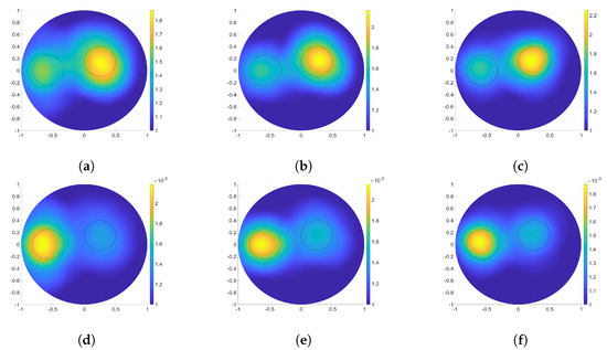 The discretized and values; values for (a) 16, (b) 24, (c) 32 electrodes; values for (d) 16, (e) 24, (f) 32 electrodes.