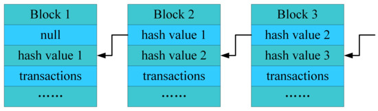 Blockchain is a chained data structure that groups blocks of data together in chronological order, which is shared and maintained by all peers in a distributed system. Blocks in the blockchain are generated through a consensus protocol and appended to the blockchain using hash function. Whenever a new block is generated, it is broadcast to all peers in the system. Peers then connect the new block to the end of the blockchain through a hash function when they receive it. As shown in Figure 1, blocks are connected in such a way that each block stores the hash value of the previous block.