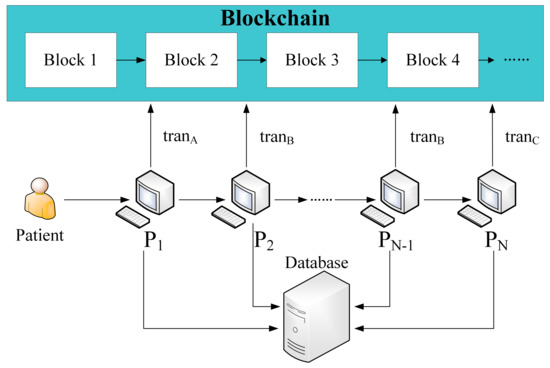 Blockchain: The blockchain stores transactions that include the identity of patients, digests of medical data and so on. Additionally, hospitals and patients will also submit verification transactions to the blockchain, which are used to verify the permission of the participant.