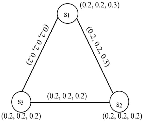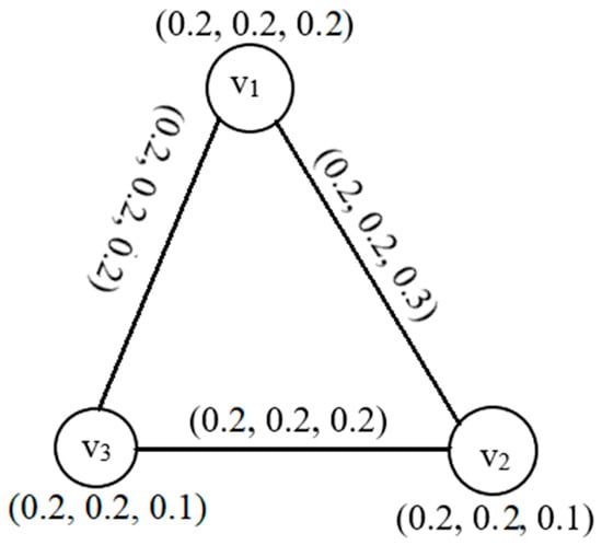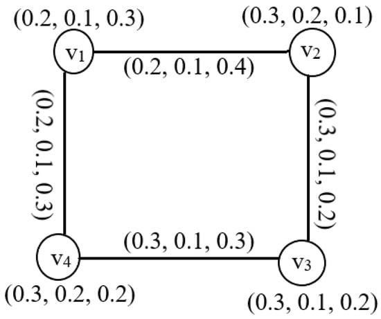 Let and be the set of vertices and edges of the graph , respectively. Let be a PFG described by Table 1, and it is shown in Figure 1.