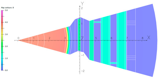 25]. Between the last two, where the magnetic field drops stepwise from 3.94 to 0.07 T, the superconducting coil is located. The eighth primitive volume in