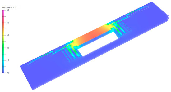 Figure 5, the distribution of the magnetic flux density is shown in the
