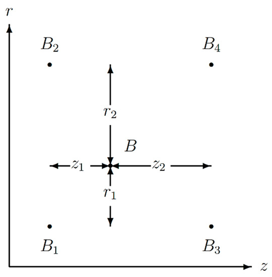Bz) components of the magnetic flux density were computed by interpolation over nearest four nodes as shown in
