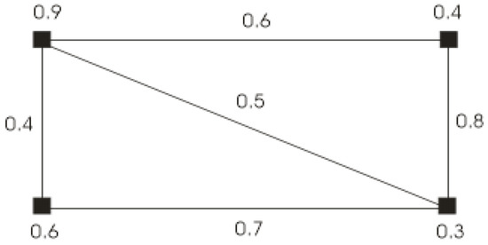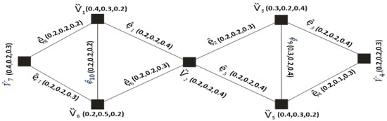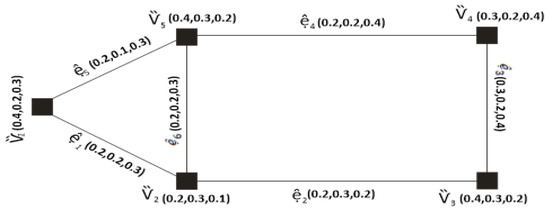 In a fuzzy graph, the edges of Figure 1 are represented by fuzzy relations, which are typically defined using a membership function that assigns a degree of membership to each possible relation between two nodes. The nodes themselves can also be represented by fuzzy sets, which can capture uncertainty in the identification of nodes or the ambiguity of their classification.