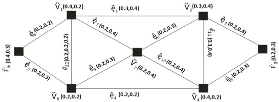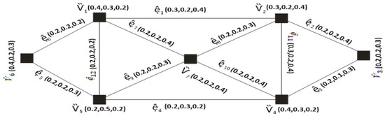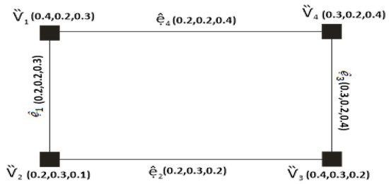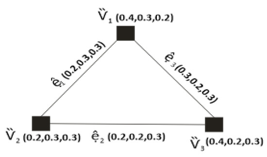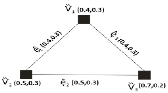 In an intuitionistic fuzzy graph (Figure 14), the vertices and edges of a graph are associated with intuitionistic fuzzy sets. The membership and non-membership degrees of a vertices or an edge reflect the degree to which it belongs to or does not belong to the graph, respectively.