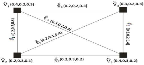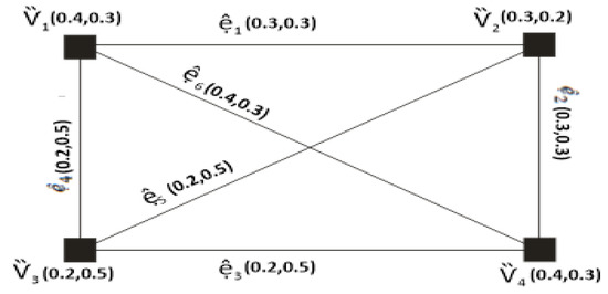 In this section, we discuss the idea of DS in PFG. Example (4) is a PFG illustrating nodes and edges in PFN. In this situation, a PFN is better suited to balance the uncertainty case than a fuzzy number or an intuitionistic fuzzy number.