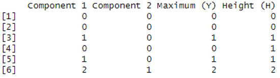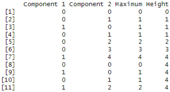 Using R software, Figure 1 shows that the final altitudes of the two components are equal to two and one, respectively; thus, the final maximum age of the two components is equal to two. In addition, the age height is fixed at two when and for the Moran walk of length 5.