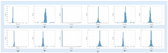 Parameter distributions of cover and CapsNets: (a) cover ; (b) cover ; (c) cover ; (d) cover ; (e) cover ; (f) cover ; (g) stego ; (h) stego ; (i) stego ; (j) stego ; (k) stego ; (l) stego .