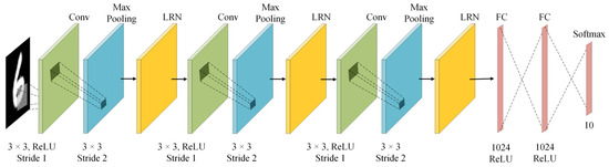 AlexNet: A simplified version of AlexNet; the architecture for the MNIST dataset is shown in Figure 8.