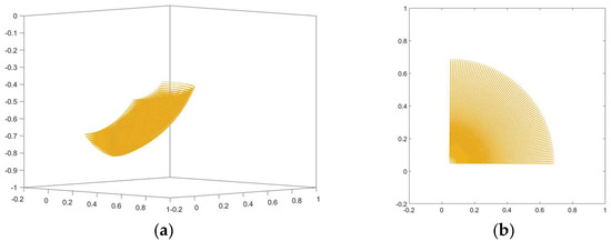 Workspace of the end of the single leg. (a)Three-dimensional workspace. (b) The projection of the workspace on the horizontal plane.