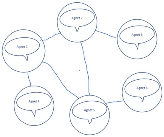 where and are the position of i-th agent and the velocity of i-th agent, respectively. denotes the input, and it is also said to be the consensus protocol that needs to be designed. For the specific physical meaning of system (2), readers can refer to [22] (it is omitted here). In addition, to simplify the analysis, we choose a value of in this article. When , it can be dealt with using the Kronecker product as well. Here, it is assumed that each agent is fitted with position and velocity onboard sensors and that they work instantaneously. In addition, the communication topologies for position and velocity are not the same; in fact, unmanned aerial vehicles can be described by system (2).