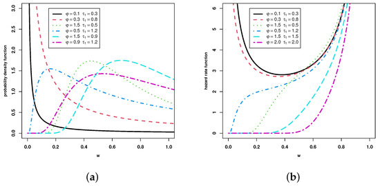 for , and for , respectively. In order to understand the modeling capabilities of the UGD, plots of the PDF and HF are represented in Figure 1 for some choices of parameters.