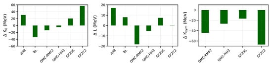 - Agrawal, B.K.; Shlomo, S.; Au, V.K. Nuclear matter incompressibility coefficient in relativistic and nonrelativistic microscopic models. Phys. Rev. C 2003, 68, 031304. [Google Scholar] [CrossRef]