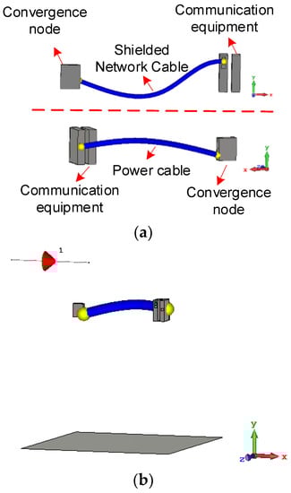 According to the equipment layout, cable direction and length of the intelligent substation sink node, a three-dimensional model with the same direction and length as the field sink node cable is established in the CST simulation software.