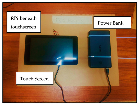 The complete node is presented in Figure 7, in which the image is captured from the top; therefore, raspberry pi is hidden as it is mounted below the touchscreen. The node is easy to carry and place anywhere around the campus.