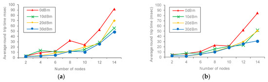 | Nodes | 0 dBm | 10 dBm | 20 dBm | 30 dBm | Average | 0 dBm | 10 dBm | 20 dBm | 30 dBm | Average |
