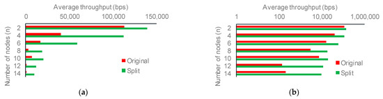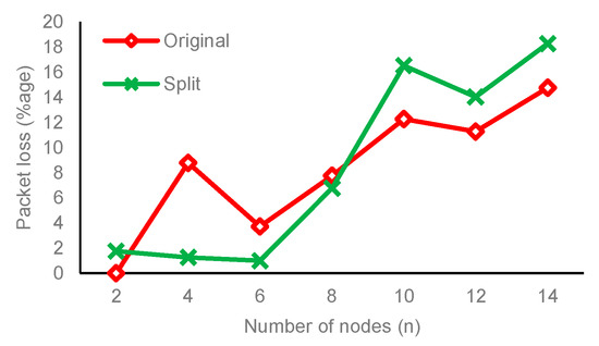 Since the raspberry pi OS driver for WLAN only provides support for a maximum MTU (Maximum Transmission Unit) of up to 1500 bytes and increasing the limit requires Linux kernels to be configured, recompiled, and reconfigured, it is left as a maximum of 1500 bytes. It is also acceptable to set the maximum MTU to 1500 bytes as indicated in the batman-adv documentation. In this case, the batman algorithm automatically fragments the frames on the data-link layer and combines the de-fragmented frames on the receiver node. Though the authors of BATMAN do not recommend this method, additional overhead for fragmentation and de-fragmentation is required and may impact the network’s performance. As the topology utilized in the experimental setup is the same for all the tests conducted (BATMAN IV, BATMAN V, and BATMAN IV with split hop penalty) during the study, they are comparable, and therefore, any changes to the MTU would affect the results in the same manner for all protocols tested.