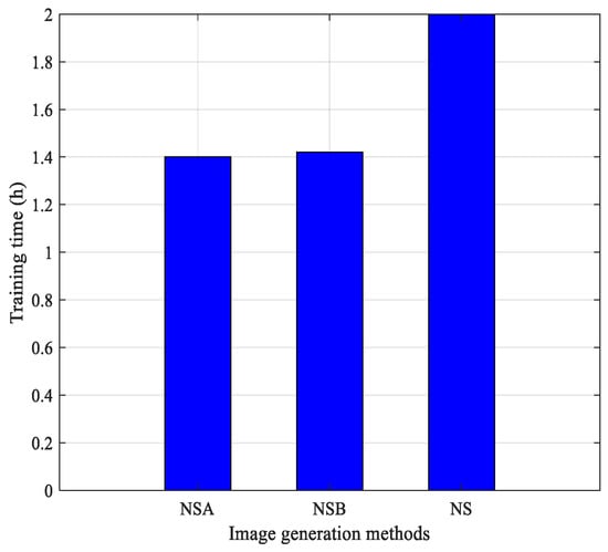 According to given results in Figure 13, the computational complexity of NS is higher than the corresponding values of NSA and NSB. Meanwhile, due to the similar mechanism of NSA and NSB, the training time of two generative methods are almost the same. However, the differences between NS and other two methods are small. On average, the difference of training time is about half an hour. As previous discussion, consider the high demanding of GPU and energy consumption, we directly use the pre-train model of StyleGAN2 and, therefore, the training time of StyleGAN2 is not represented in Figure 13. Obviously, we firmly believe that the computational complexity of StyleGAN2 is higher than other three methods NS, NSA, and NSB. With the lower computational complexity, the practicality of the proposed approach is rather high.