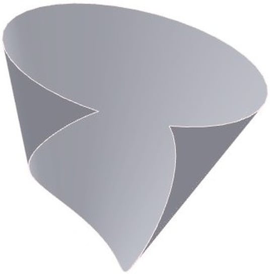 In Figure 15, a cylinder is shown together with the intersection curve between it and the previous straight truncated cone. To obtain this part of our whole 3D model in such a way that its flat pattern could be computed, we needed to proceed as follows. First of all, the solid cylinder was created with the protrusion command, and then a thickness of 0.0001 mm was applied. As said before, this is the minimum value allowed by the computer application. Next, a conical cut was applied with the characteristics of the duct, thus obtaining the cylinder together with the intersection curve produced by the truncated cone.