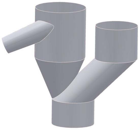 The other hopper dimensions taken as parameters are the diameter of the inlet fluid border ( − ), , the diameter of the upper border ( − ), , the diameter of the lower border ( − ), , the height of the lower duct with respect to its vertex, , the angle of fluid duct axis with respect to the vertical, , and the angle of the oblique duct with respect to the horizontal, .
