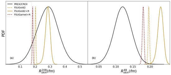 - Roca-Maza, X.; Centelles, M.; Viñas, X.; Warda, M. Neutron skin of 208Pb, nuclear symmetry energy, and the parity radius experiment. Phys. Rev. Lett. 2011, 106, 252501. [Google Scholar] [CrossRef] [PubMed]
