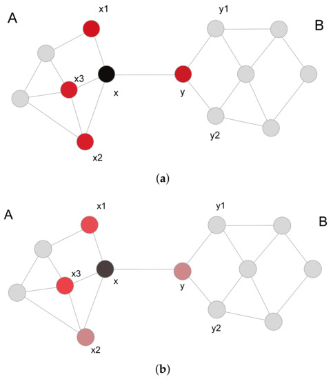 In the formula of Ollivier–Ricci curvature, the probability distribution function of the neighborhood of node i V needs to be defined explicitly. In this paper, we choose a commonly adopted empirical family of probability distribution [27]: