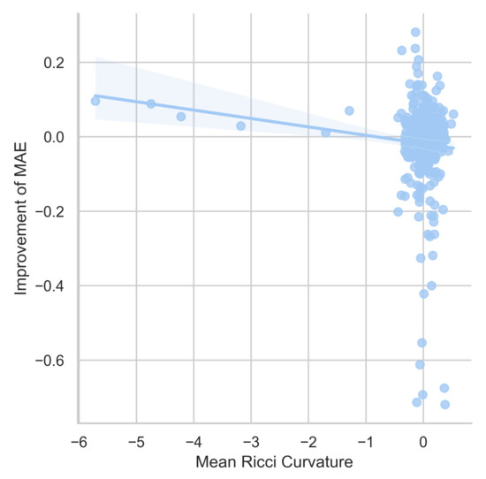 To measure the relationship between the Ollivier–Ricci curvature and the prediction performance improvement of the model, we first define the average curvature of the connected edges of a node: