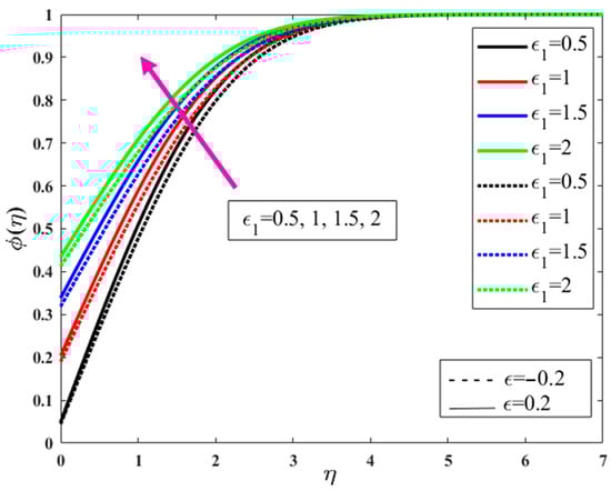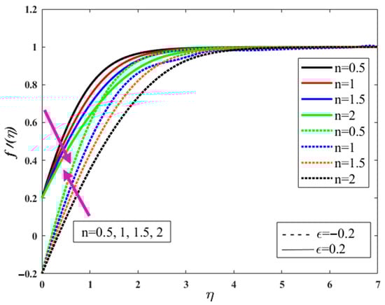 The value of is checked by both routines: the bvp4c/shooting method for computing with fixing parameters and giving variation to (wedge stretching/shrinking parameter) and tabulated in Table 1. Both techniques bring the same findings which show the accuracy of this result.
