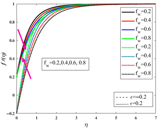 Expressions regarding velocity components and are given by . After employing Equation (9), the governing PDEs are renovated into the ODEs enumerated below [27,28,29,30,31,32,33,34,35,36,37,38,39,40].