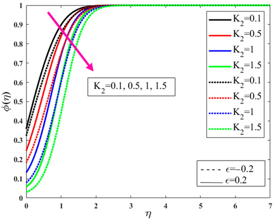 Since many physiologically responsive systems, such as tower cooling, include a combination of heterogeneous and homogeneous (H–H) chemical interactions, these reactions were crucial. This happens because H–H reactions can be endothermic as well as exothermic. A strong connection occurs between most of the fluid’s homogeneous processes and the catalytic surface’s heterogeneous reactions. Surface and liquid temperatures, as well as fluid and reactant species concentrations, interact in triangular fashion. There has been very little research completed on these chemical processes which are relevant to the diffusion and the formation of fog, as can be seen from the references. Merkin [36] constructed a model to explore the influence of catalytic reactions on a boundary layer fluid flow when it was exposed to an expandable medium. The goal of this investigation was to better understand the flow of the boundary layer. The Buongiorno model was used by Xu et al. [37] to investigate the effect of catalysis along with the stagnation point in the case of a nano-liquid that was passed through an elastic medium. Hayat et al. [38] conducted extensive research on the impact of the cubic autocatalytic process with radiation influence on the motion of a nanofluid when it was exposed to a 3D extensible medium. Mtiaz et al. [39] researched the influence of chemical reactions on radiative second grade liquid motion subjected to a curved surface integrated with magnetic phenomena. This study addressed a chemical specie process using a 2nd grade liquid. Waqas [40] designed a mathematical model to study the impact of chemical reactions on ferromagnetic liquids.