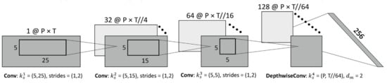 The CNN model is composed of four main blocks. The first three blocks represent a set of spatiotemporal filters. The last block is the feature aggregation block to control the size of feature embedding. In the last layer, L2 is to normalize the embedding feature, so that the embedding is constrained on a unit hypersphere in the embedding space. Embedding normalization can speed up the convergence of triple loss and improve the performance of data validation. The total amount of training parameters of the first three convolution blocks (i.e., independent of the input size) is 425730, and the number of trainable parameters of the last layer related to the input size is . For example, for an EEG input with 7 channels and 1250 time samples (5 s at 250 Hz), the total number of trainable parameters of the designed CNN model will be 523,740.