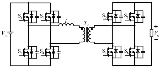 Figure 1 shows the topology of the DAB converter. Due to the presence of auxiliary inductor L, the DAB converter can achieve soft switching and zero voltage switching (ZVS) during operation, which also enables the efficiency of the DAB converter to reach over 97% in high-power applications [25,26].