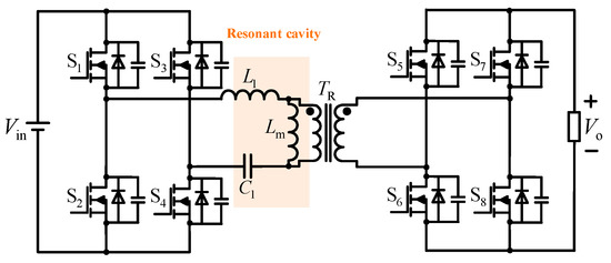 In order to solve the problems of forward and reverse differences and the complex design of LLC converters, a CLLLC resonant converter topology is proposed, as shown in Figure 3.