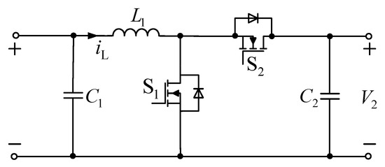 Figure 4 shows the buck/boost converter topology. The buck-boost converter has the advantages of wide-range voltage conversion and bi-directional power transfer. It has received wide attention from scholars at home and abroad in recent years and is used in DC microgrids [27,28,29,30,31].