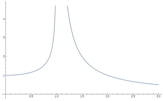 Currently, when analyzing superluminal motion, the most commonly used transformation factor is , which corresponds to the Lorentz factor, including an imaginary unit due to v being greater than c [32]. This factor also implies a negative squared mass () [10]. In the case of the proposed alternative factor, this overcomes the difficulty of the imaginary value or negative squared mass. However, both transformation factors mathematically demonstrate an apparently insurmountable barrier between subluminal and superluminal domains, with particles confined to remain in the domain in which they were generated [6,10]. Nevertheless, perhaps with this alternative factor, we can also attempt to find some kind of “tunneling effect” between two domains of real numbers, rather than one of them being of imaginary nature.
