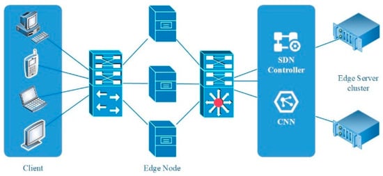 The main function of this work is to collect current traffic data and pass the data to the controller for feature extraction. The extracted features are pre-processed and passed to the neural network model. Then, the prediction and identification results and mitigation strategies are given. The framework is shown in Figure 2 below. Here the experiment is done using Mininet. Alternatively, multiple virtual machines can be used. The client as the sender sends data to the edge service cluster as the receiver through the edge cluster network. The CNN server and SDN controller in the edge cluster network predict the availability of data in real time. Then, they send different types of data according to the corresponding policies to further improve the security and availability.