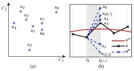 Sequential MPC methods, called cascaded schemes in the literature, attempt to simplify the design process by indirectly achieving the purpose of the weighting factor, rendering it unnecessary []. Another method that avoids the weight factor is the simplified-model MPC. This can be applied where the competing control objectives can be analytically transformed into one parameter such that all objectives have the same unit [,,]. Online optimization tuning utilizes an optimization algorithm to select the optimal weighting factor with respect to real-time plant and operational conditions [,], and can increase the computational burden of the controller. It comprises both non-AI-based and AI-based methods. AI-based online tuning schemes optimize the tuning process using genetic algorithms, fuzzy logic, and other AI schemes []. AI methods have been shown to have relatively low computational requirements in control applications [].