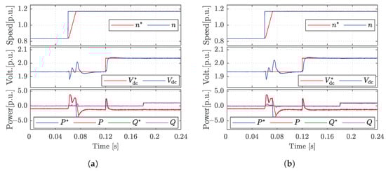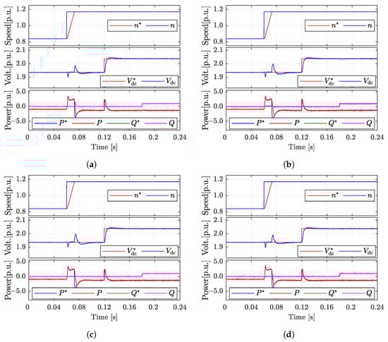 Figure 11 shows the overall control performance without any mismatch in the model parameters (Case A), while the ripple and THD data are collected in Table 3. For all four control methods, three step parameter changes were effected to test the transient performance of the control schemes. The speed reference was changed from 0.85 p.u. to 1.15 p.u. at 0.06 s. The DC-link voltage was changed by p.u. at 0.12 s. Finally, a pulse reactive power reference change of 1 p.u. was initiated at 0.18 s.