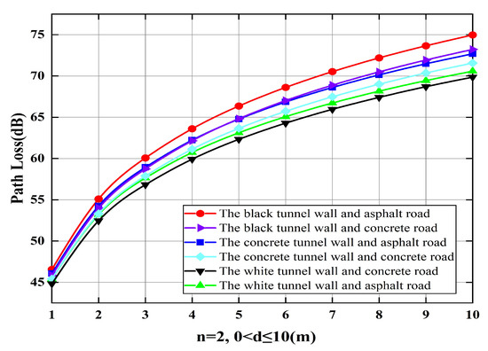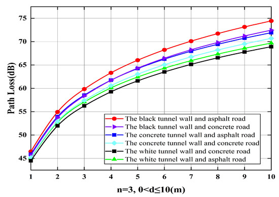 - We propose a new path loss calculation scheme that can be used for information transmission between vehicles in tunnels. In the proposed scheme, not only the factors of the road and tunnel wall are considered, but also the differences in reflection coefficient between the road materials and tunnel wall fireproof coatings, which can better improve the accuracy of vehicle information transmission.