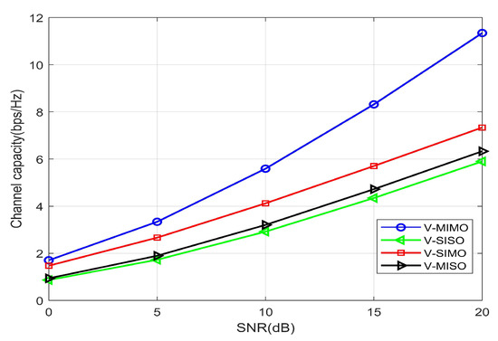 3.3. Analysis of V-MIMO Channel Capacity Simulation in a Tunnel