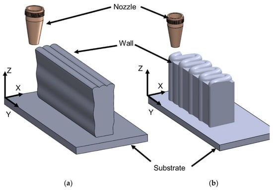 These parameters refer to the variables that are adjusted during the manufacturing process, such as the deposition rate, the temperature of the electric arc, the material feed rate, the geometry of the molten pool or bead and the distance between the nozzle and the part, among others. These parameters must be carefully controlled and adjusted to obtain the best mechanical properties and dimensional and structural accuracy of the part. In recent times, research on this technology has focused on the control and monitoring of these parameters [,,] and the study of different material deposition techniques and their influence on them [,,,,].
