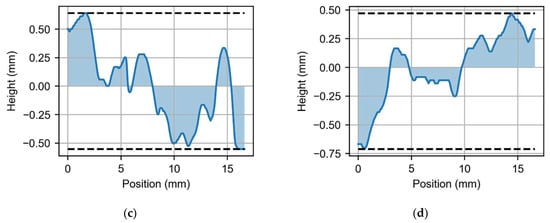 Surface profiles obtained from image analysis in (a) left-side overlapping, (b) right-side overlapping, (c) left-side oscillating and (d) right-side oscillating.