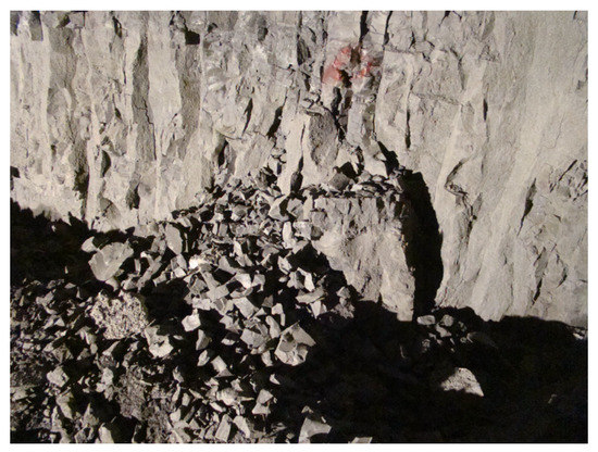 Based on the above analysis and in combination with Table 5, it can be concluded that during the excavation of the CJRM tunnel at various dip angles, the deformation of each monitoring point from large to small is as follows: side walls, spandrels, vault, wall feet, floor. The maximum deformation value appears at the right wall followed by the right spandrel, which means that the most common engineering safety accident during tunnel excavation is the failure of the side wall pillar and the collapse of the surrounding rock, which corresponds to the most common engineering problems encountered in the construction of the Baihetan hydropower station diversion tunnel [41], as shown in Figure 14.