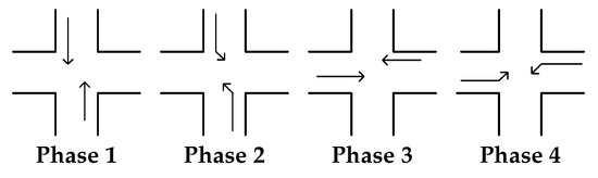 - Dunne, M.C.; Potts, R.B. Algorithm for Traffic Control. Oper. Res. 1964, 12, 870–881. [Google Scholar] [CrossRef]