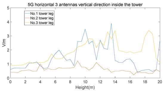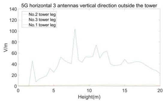 4.2. Three-Antenna Vertical Scenario Simulation of 5G Base Station Co-Located High-Voltage Tower