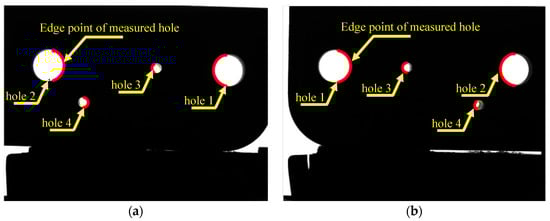 Edge detection results of the tested hole. (a) Mold 1; (b) Mold 2.