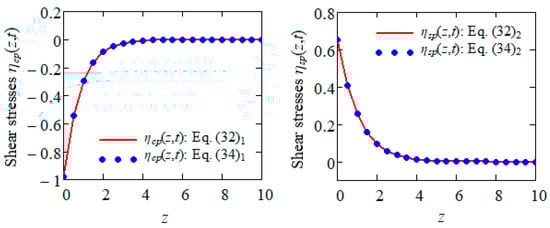 Bearing in mind the previous results, the result is that the dimensionless starting shear stresses , corresponding to this motion can be written in the forms